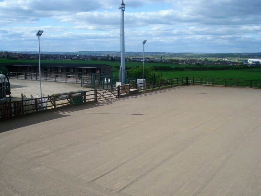 The Ménage is 40x20 and is fully drained enabling use in all weather conditions. The surface is a mix of sand and chopped tyre and is levelled on a regular basis to provide an optimum riding surface. For riders wishing to ride at night we have 6 powerful floodlights allowing riders to ride until 10pm when needed. We can also offer a wide range of brand new lightweight jumps for riders to use in the ménage.
